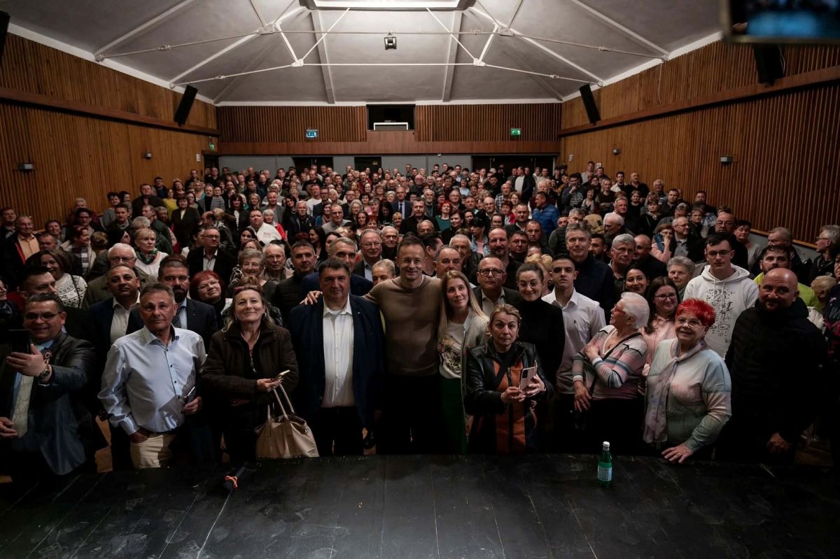 A salgótarjáni Kohász Művelődési Központban tartott lakossági fórumot Szijjártó Péter külgazdasági és külügyminiszter Becsó Zsolt országgyűlési képviselővel közösen, 2026. március 17-én. (Fotó: Kreicsi Bálint | Facebook)